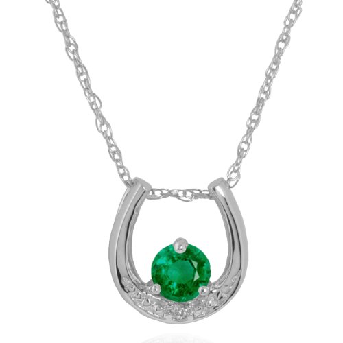Looking for 10k White Gold Created Emerald and Diamond Horseshoe Pendant (.01 cttw, I-J Color, I1 Clarity),17